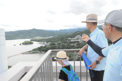 国水研の屋上から、八代海を一望!天草の島々まで見渡せます。ここは、水俣でも指折りの眺望だと思います。